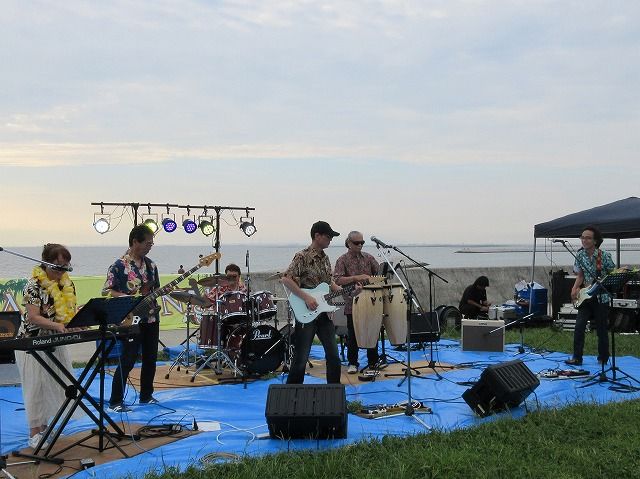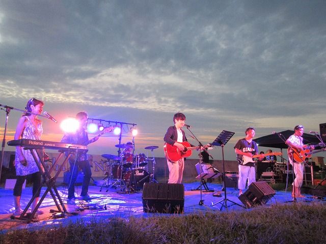 海の夕焼けをバックに演奏するのを楽しむというイベント