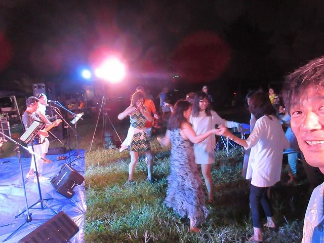 浜辺でバーベキューを楽しみながら アマチュアバンドが