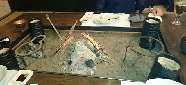 その後 静かな炉端焼きのお店で 静かに鮎や海老や