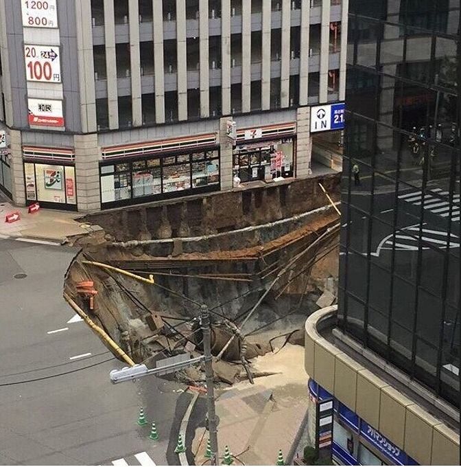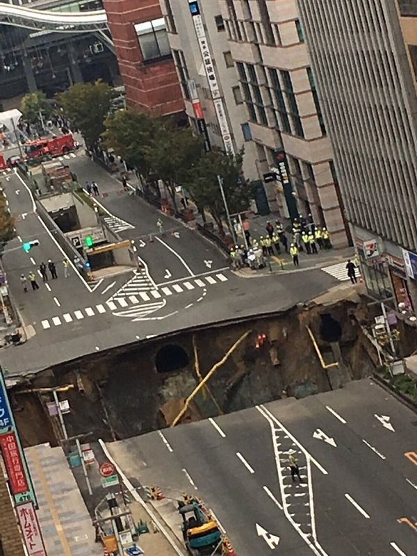 福岡市のJR博多駅前で起きた突然の道路陥没には 大変