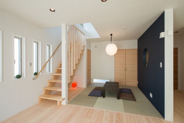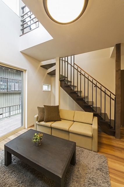 奥行き感があるのでリビングが広く見えて、階段自体がアク