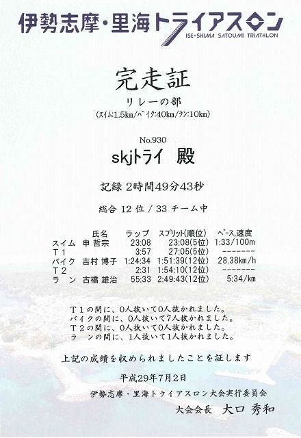 れるもので スイム1.5キロバイク40キロラン10キロ