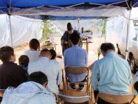 ▲ 見学会の地図(クリックで大) (左)▲ 上棟の様子(中) ▲ 地鎮祭の様子(右)