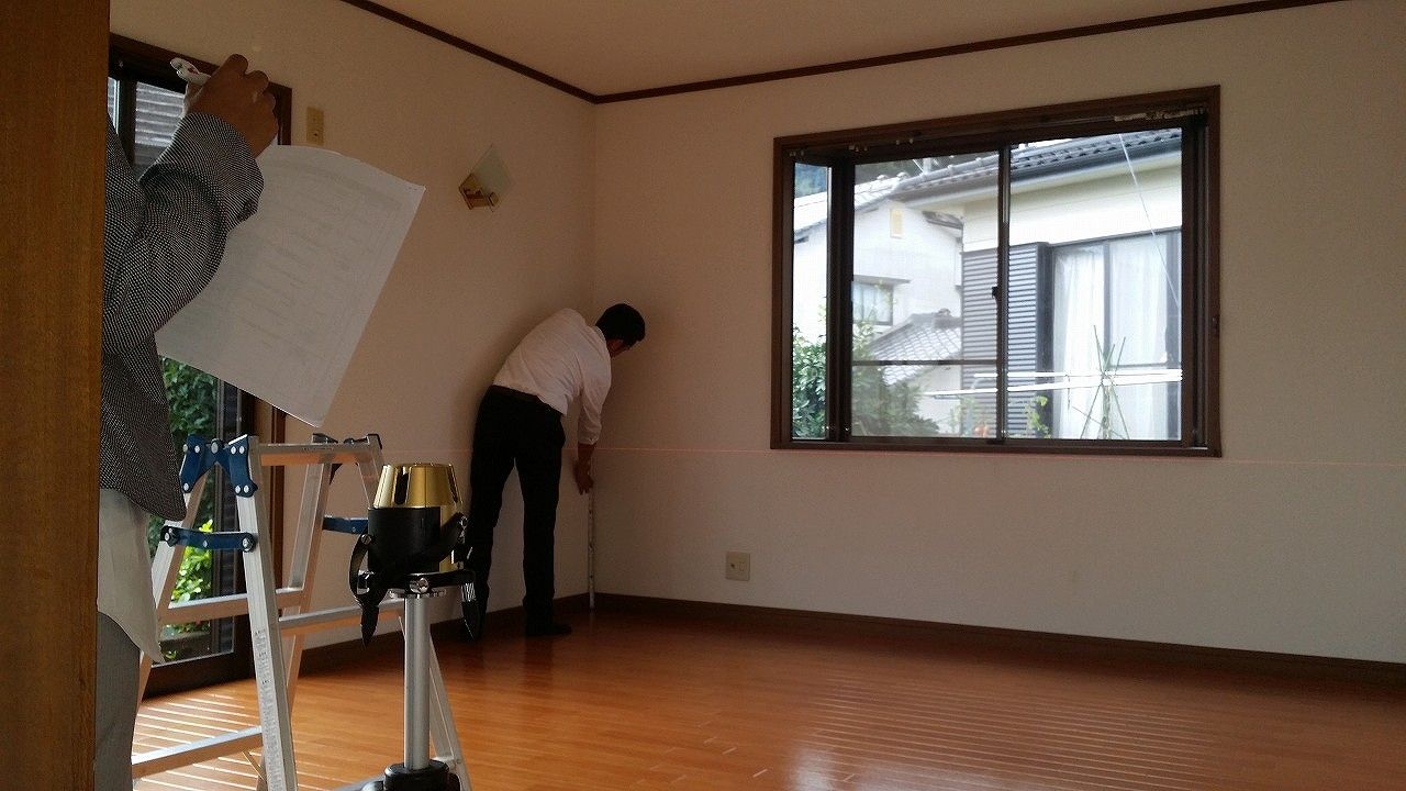 レーザレベル使っての床の傾きの確認