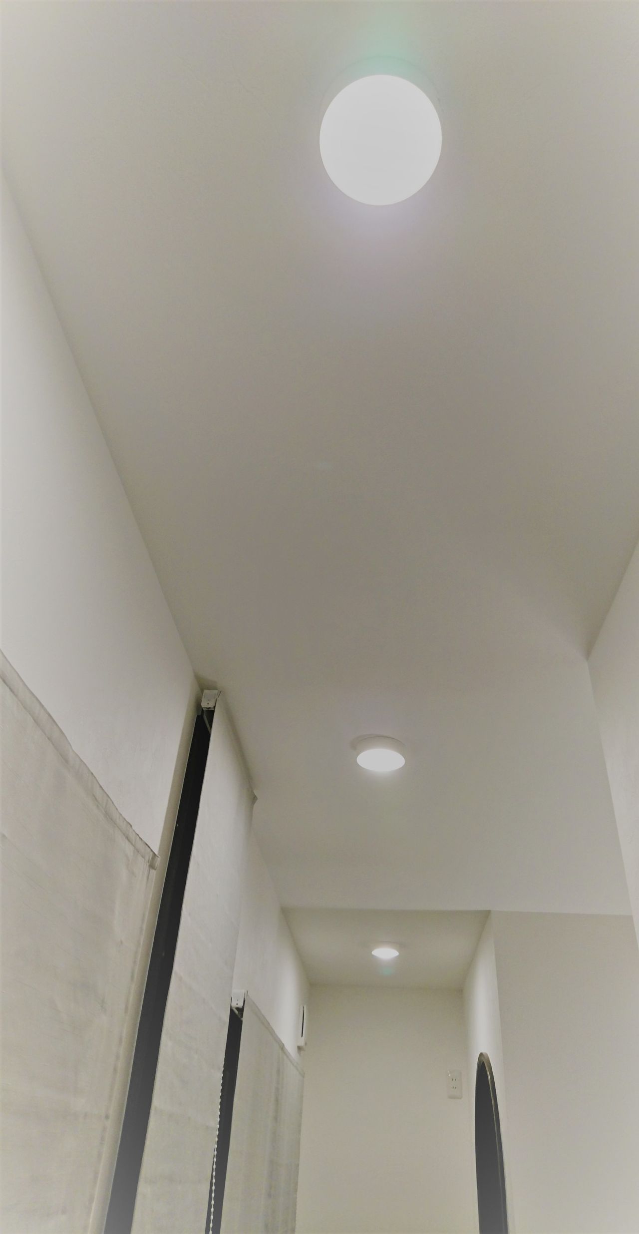 (壁付)と廊下の2ヶ所を3か所に増やした事とで十分な照度が確保できたのではないかと思います。