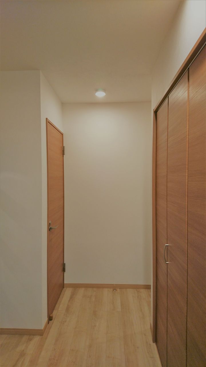 廊下はリフォームの為ダウンライトが計画しにくかったのでダウンに近いシーリングライト(天付) を選びました。