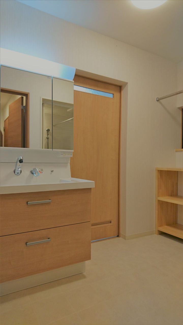 左の収納扉が耐力壁の確保の為、開口位置を変えました。