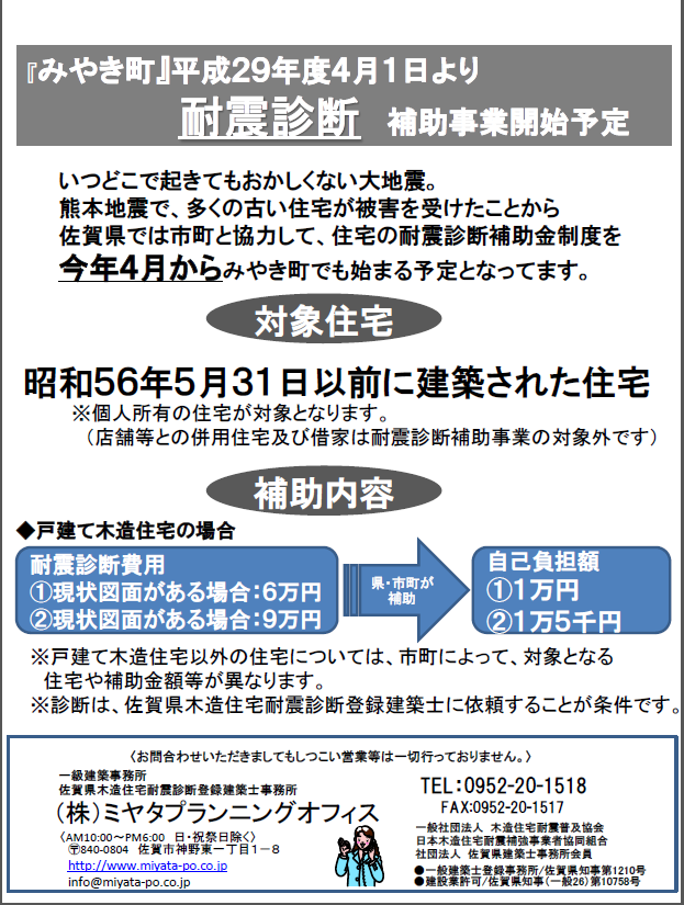 佐賀県では、今年度は一部の市町村のみが耐震診断の補助事業を行っていましたが、