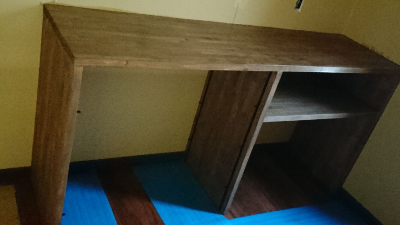 側面は、キッチンのエンドパネル(キッチンと同じ柄)がくる予定でしたが、カウンターの補強の為に付けた側板をキッチンまで伸ばす事にされた部分です。