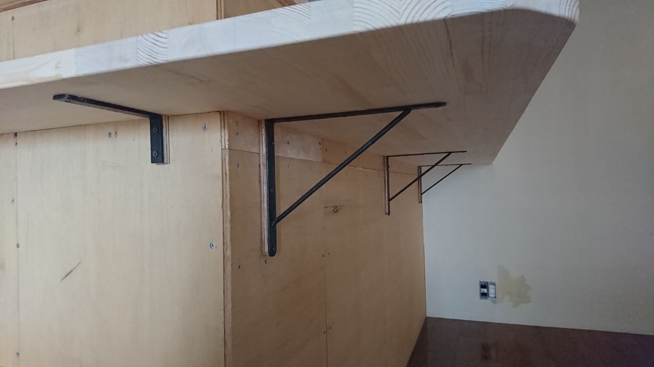 あとは棚受けの金物をタイルの面と合わせたかったので金物の下にタイルの厚み分木で、浮かせてもらいました。