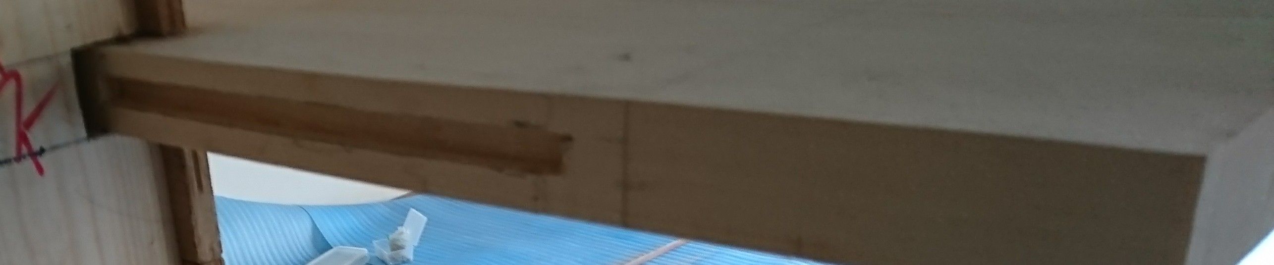 ここは奥行が違っていたので、斜めでなく広い方勝ちで、突きつけたいと思っていましたが、繋ぎ部分の後々のズレ防止のため、金物補強にすることになりそうでしたが、大工さんの提案で内部で凸凹を組み合わせて金物を見せずにおさめてくださいました。わざとではない金物を見せるのが気になっていたので、凄く嬉しかったです。