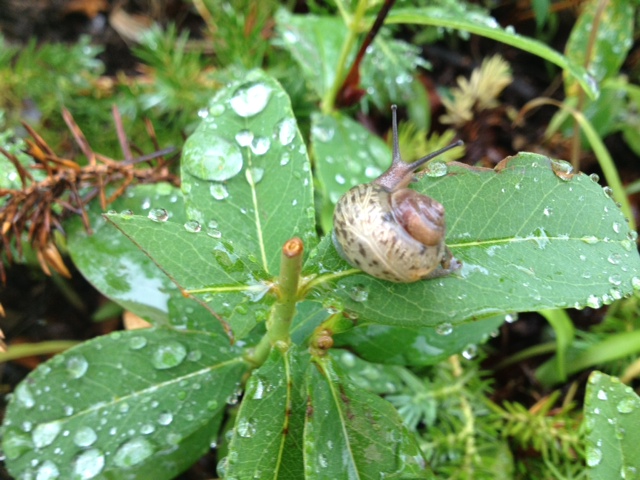 玄関にいると踏まれてしまうので、葉っぱが生い茂る草の上へ〓