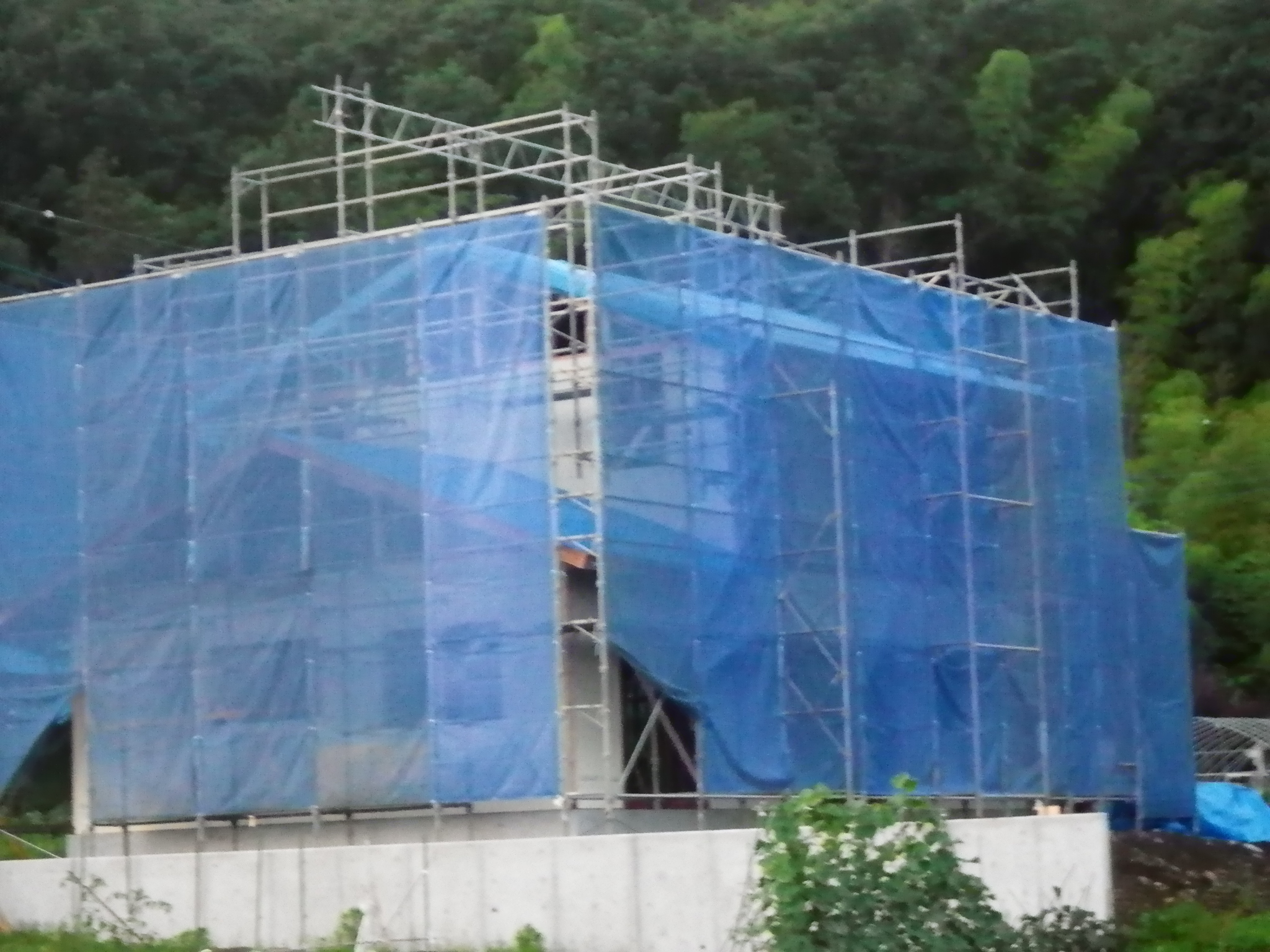 天候が悪い中、皆様の御蔭で無事に上棟を迎えることができました。