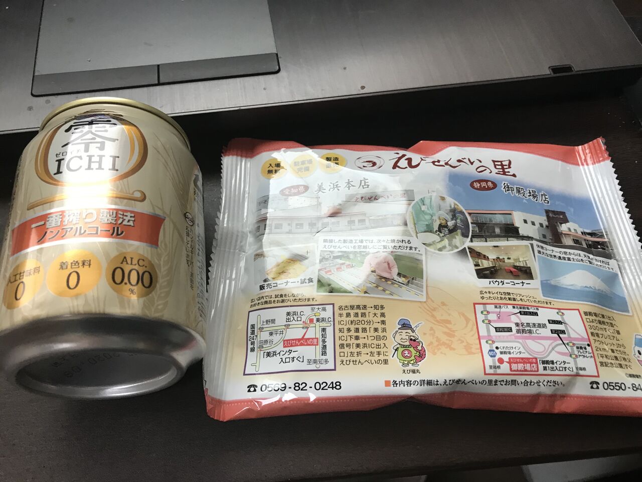 キリンシーグラムさんからノンアルコールビール、えびせんべいの里さんから海老煎餅をいただいて帰りました。