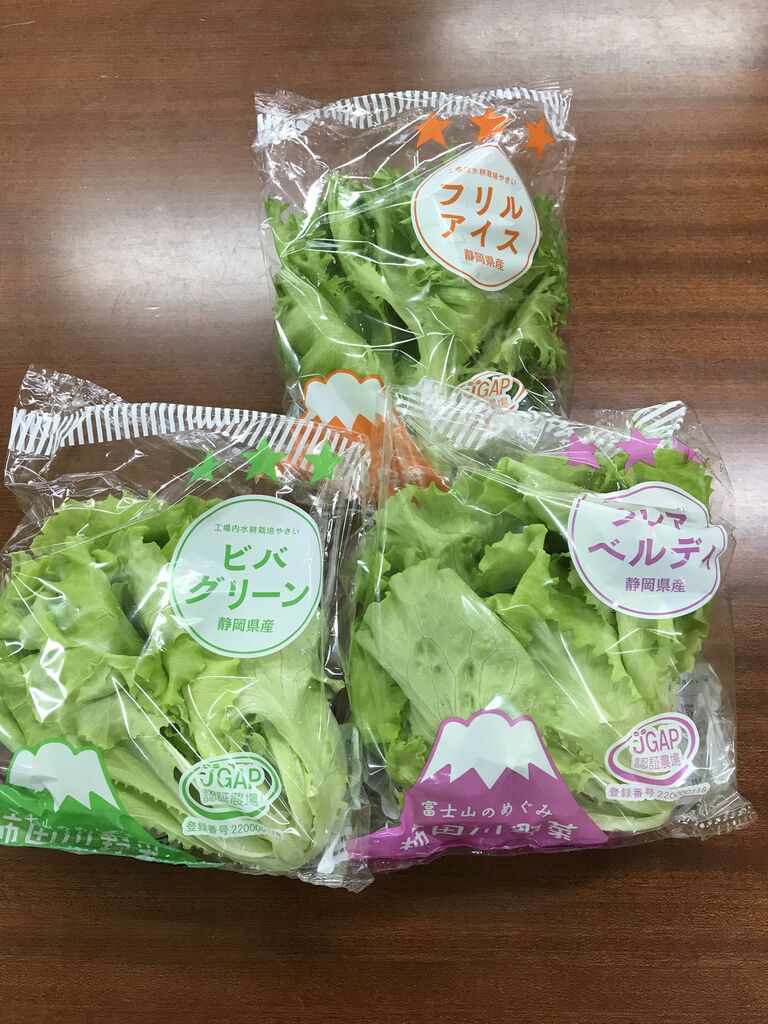 水耕栽培の野菜です。御殿場の障碍者施設、ステップ・ワンさんで作られたものと思われます。マルチリーフレタス。