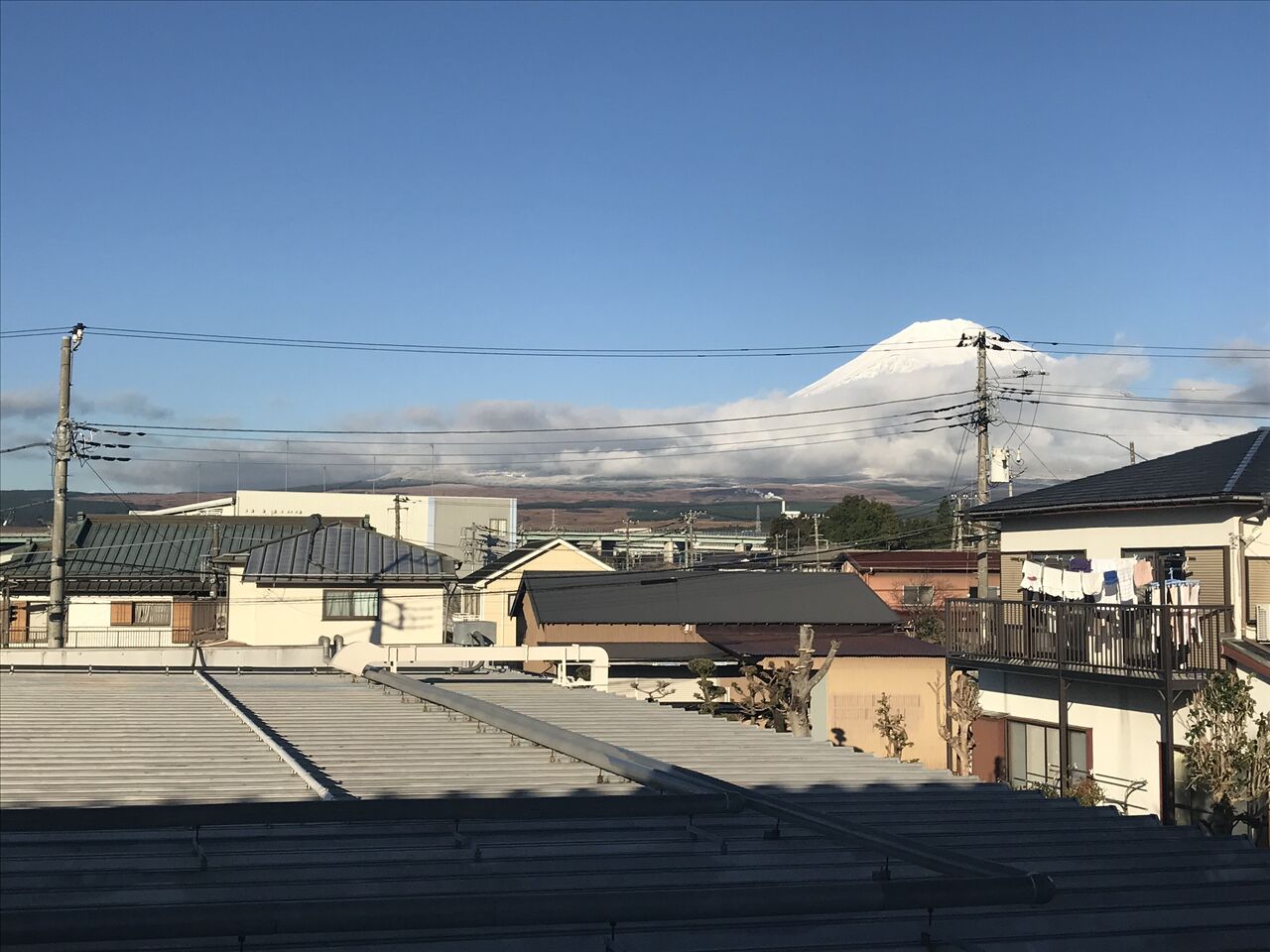 ある日の朝の富士山とその左裾野山々。雪がかなり積もりました。