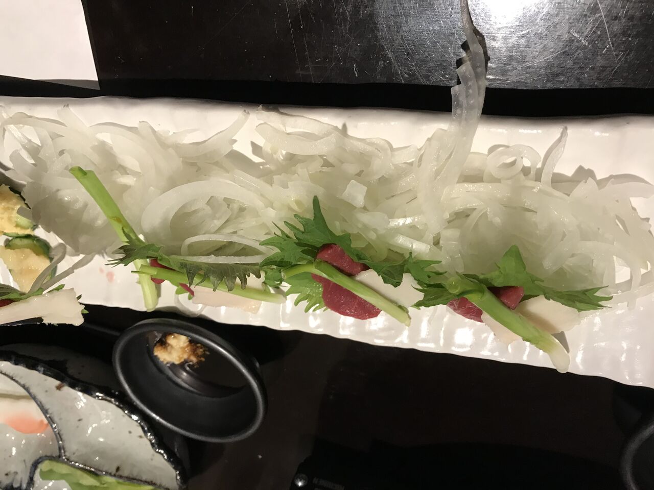 馬刺し。 餃子。