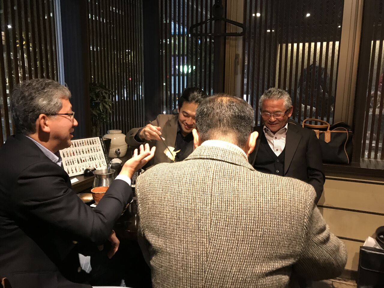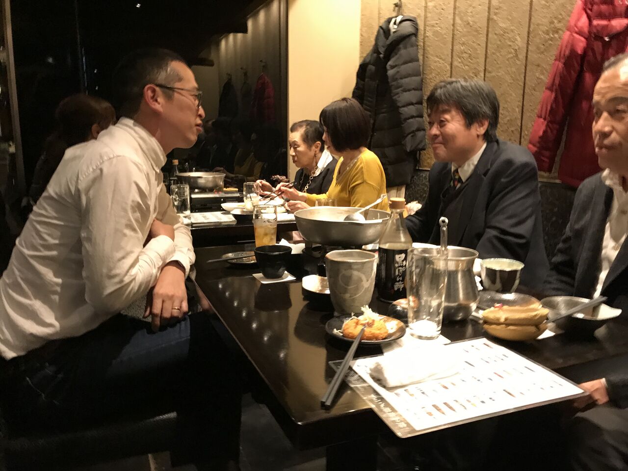 一日目の研修は午後から始まり、夕方で終了。宿泊するホテル内の居酒屋で懇親会です。