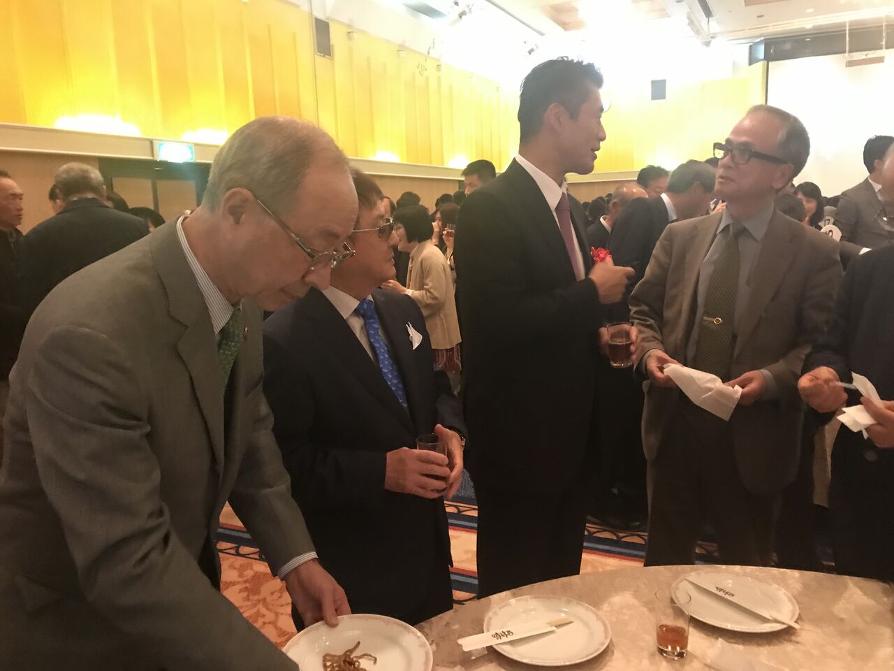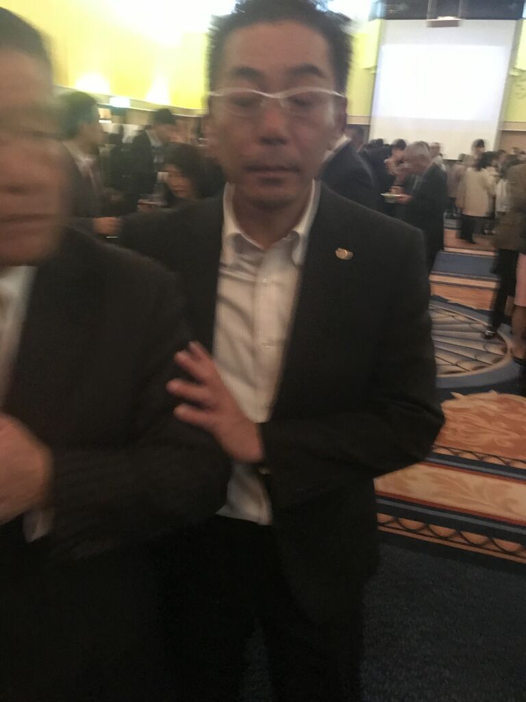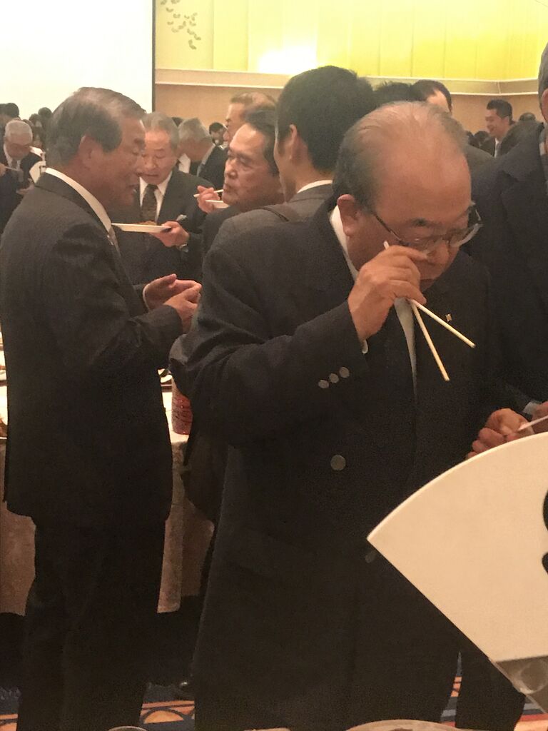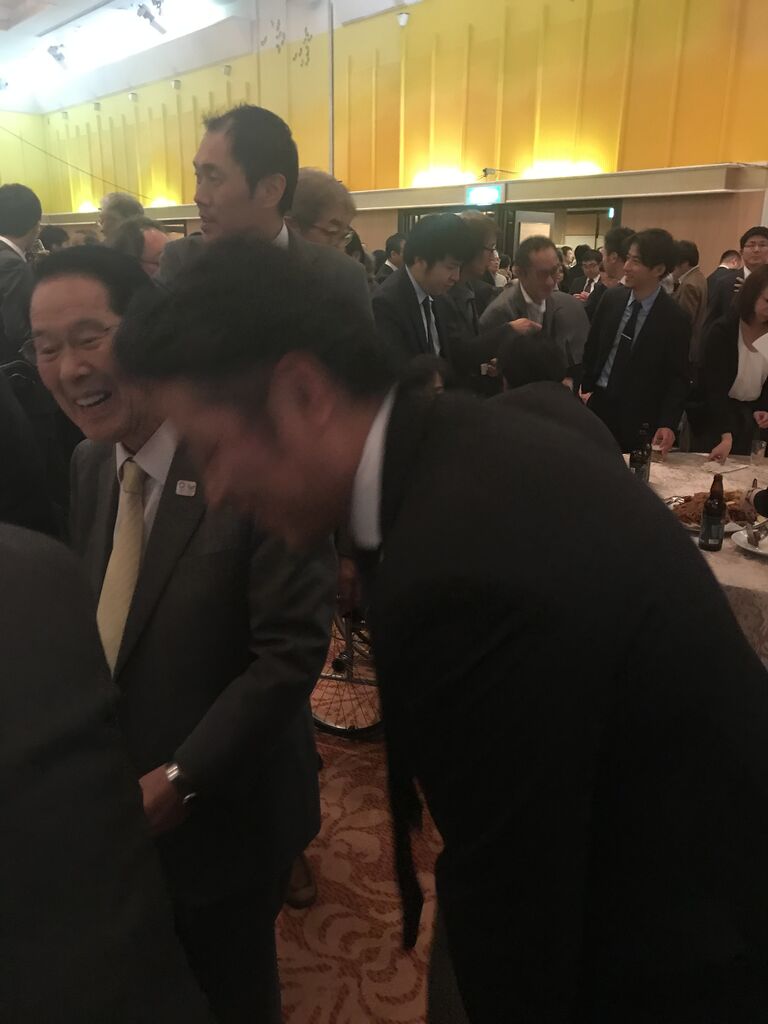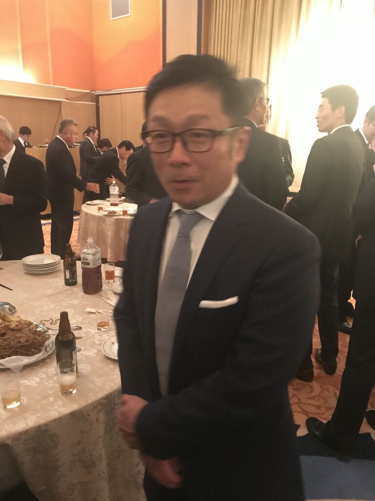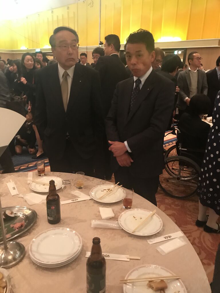懇親会、開始です。珍しい、高橋靖銘市会議員親子のツーショット。