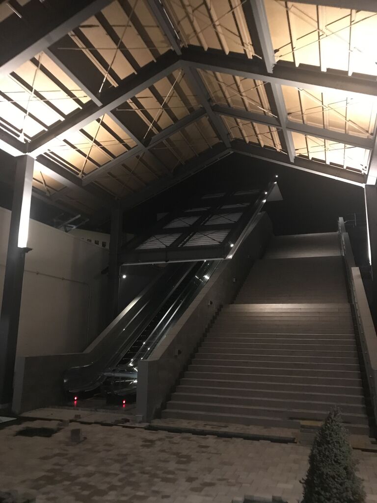 橋へ上る階段・エスカレーター、完成しつつあります。