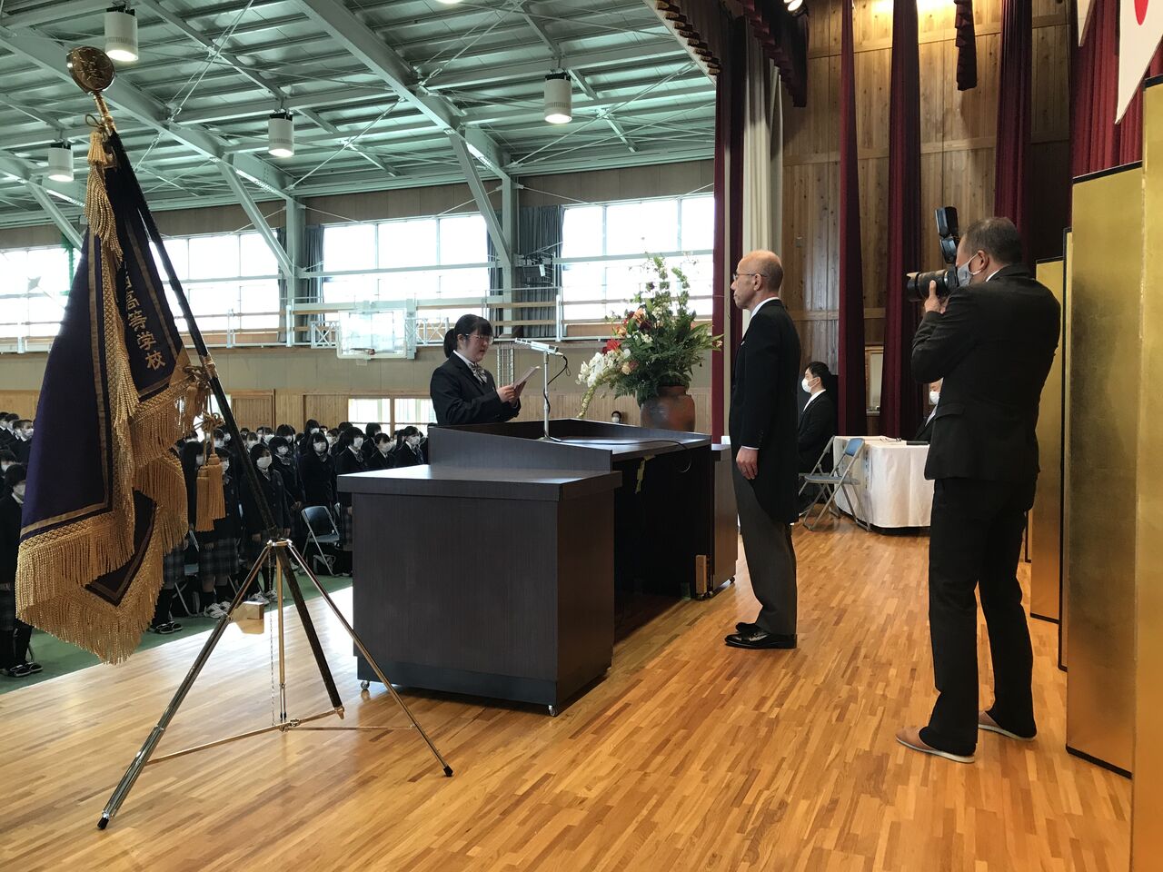 三男がこの春まで通っていた高校の入学式でした。次の総会までは私が保護者会長なので、来賓として祝辞を述べさせていただきました。