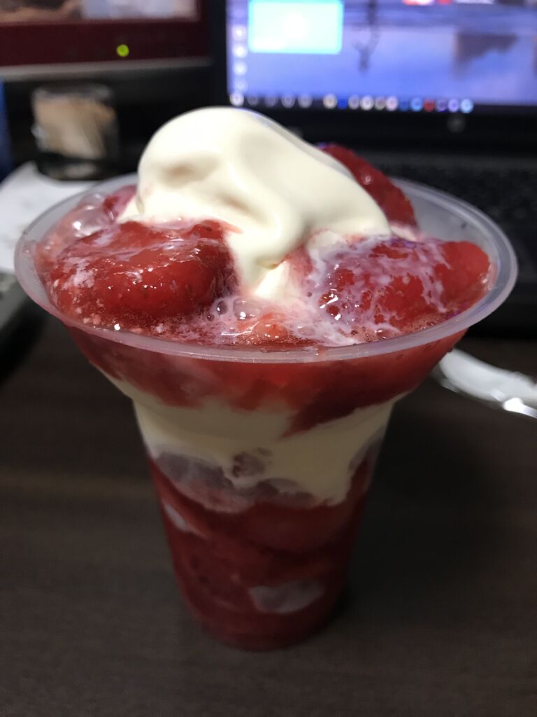 ミニストップ、練乳苺パフェ、たっぷりサイズです。