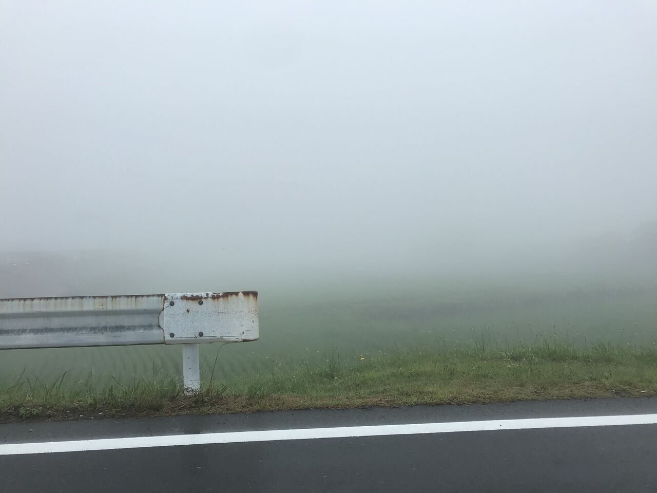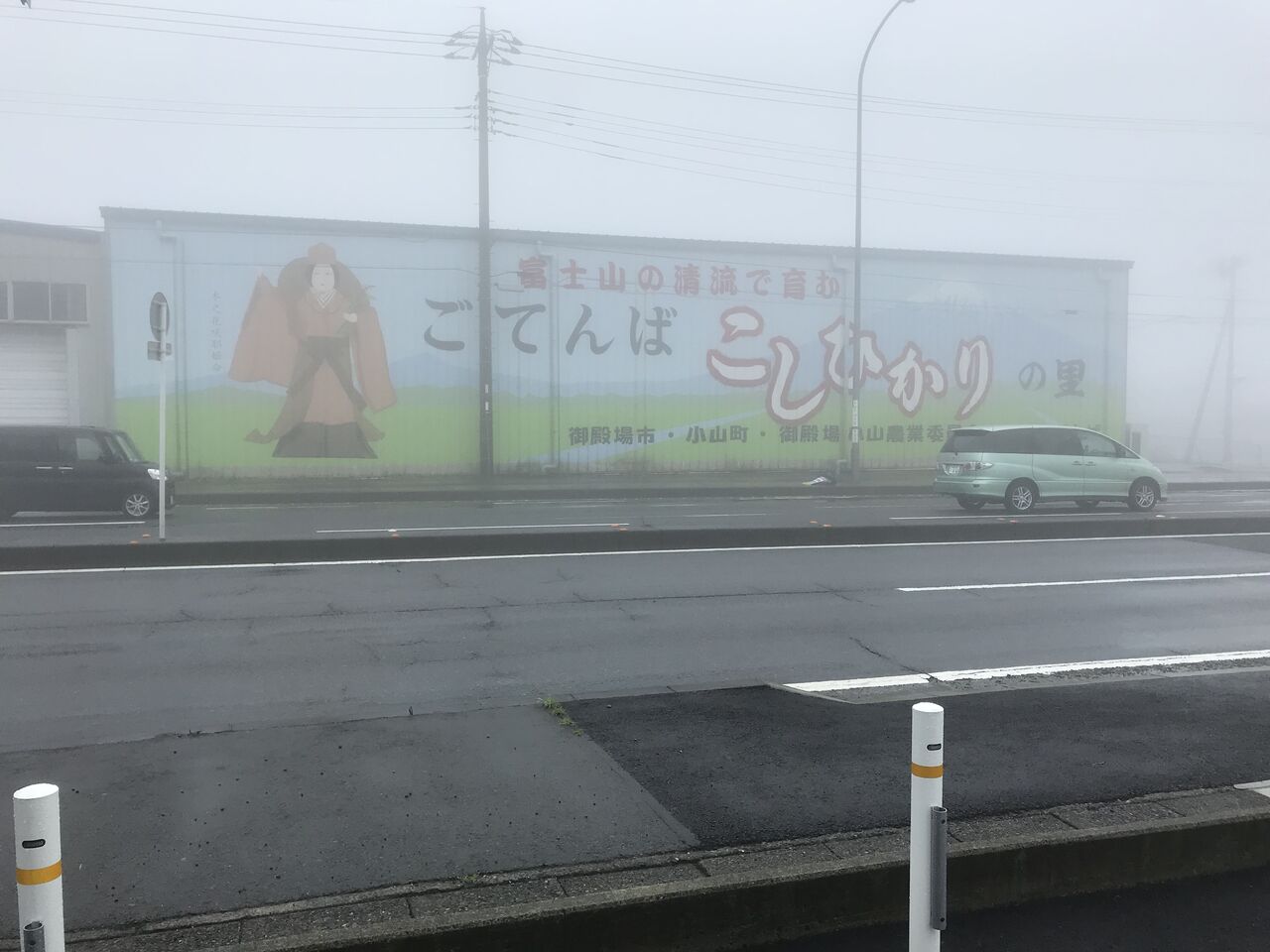 自宅前の道と、札場交差点付近の田んぼです。御殿場の霧は、だいたいいつもこんな感じです。
