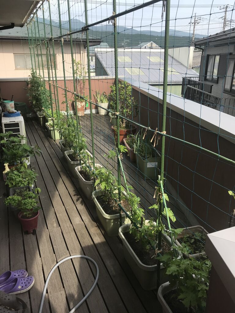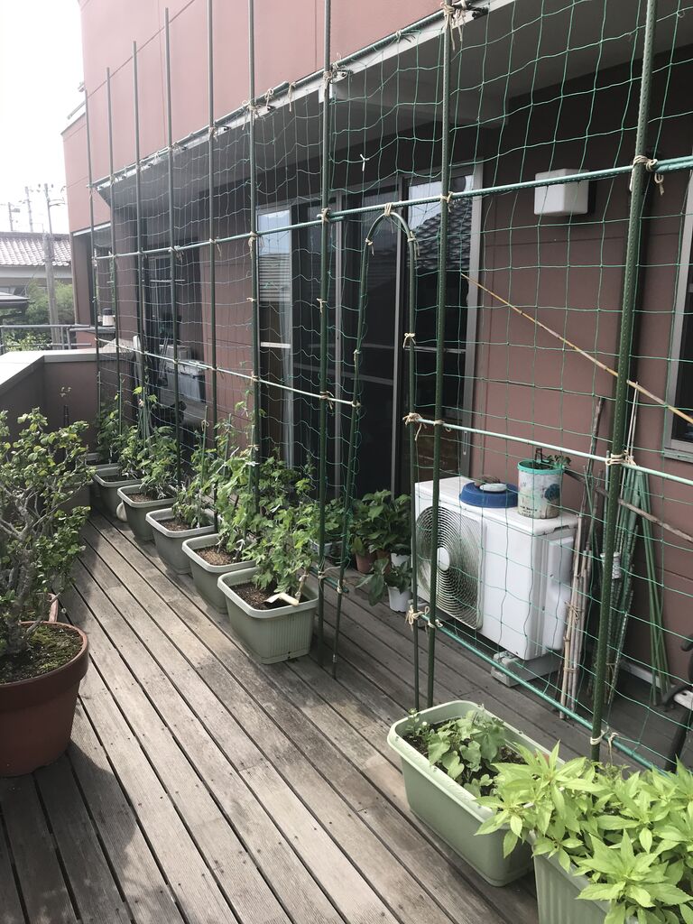 今年も、2階ベランダの緑のカーテンのゴウヤが育ち始めました。