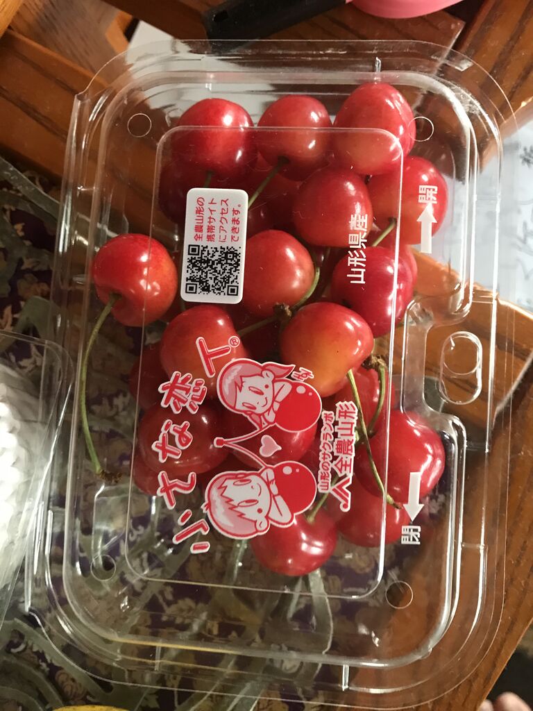 またまたサクランボ、妻がマックスバリュで買ってきました。前より赤いです。
