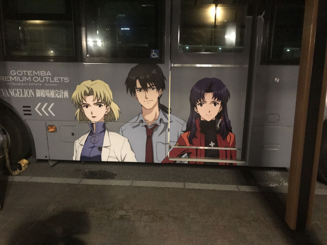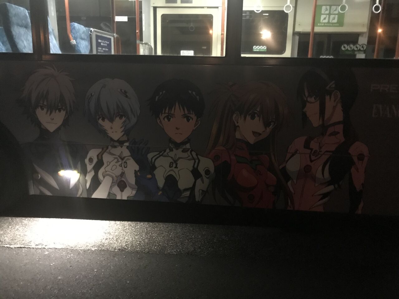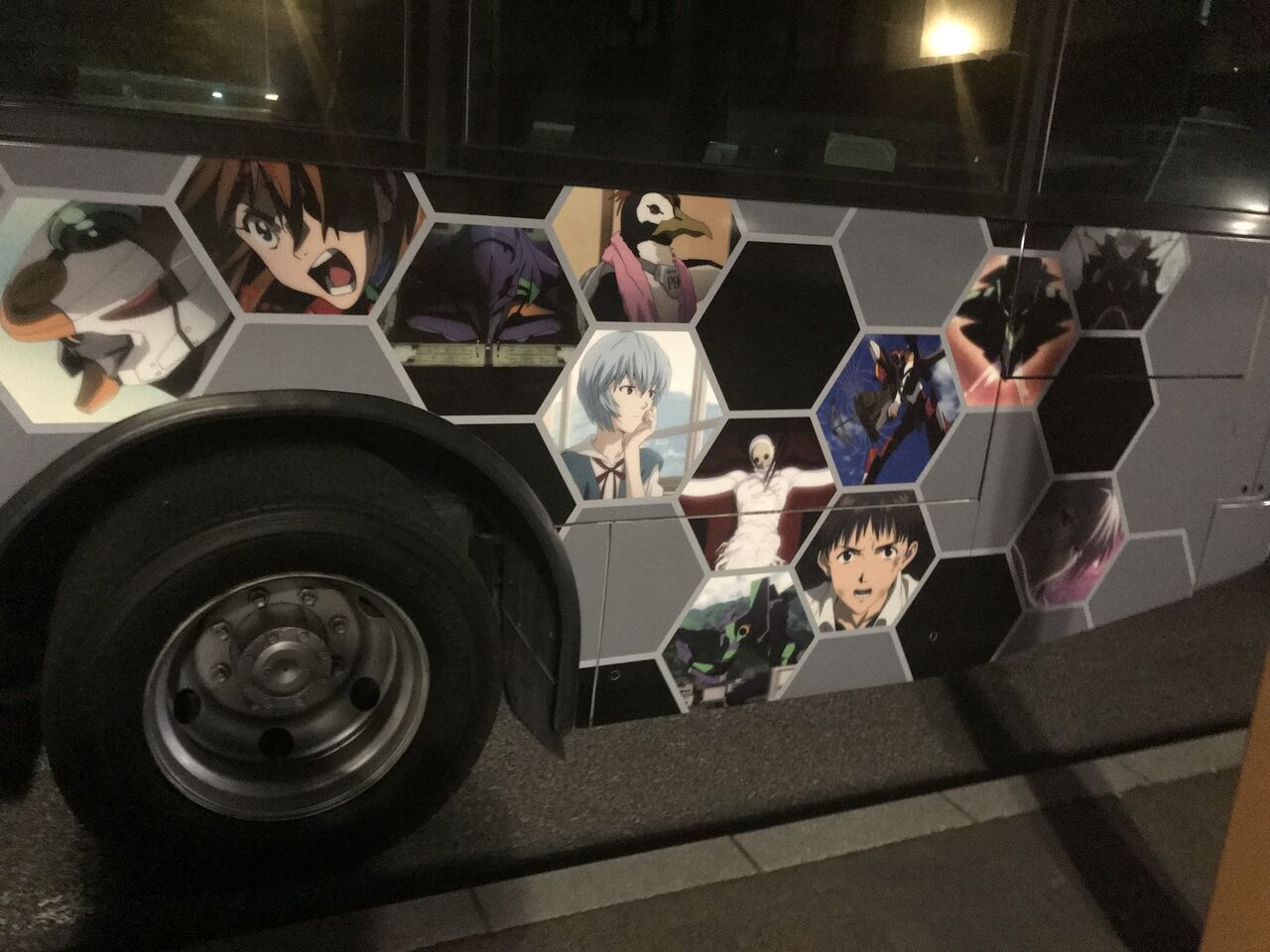 エバンゲリオンとコラボ中に付き、ラッピングバスが走っています。