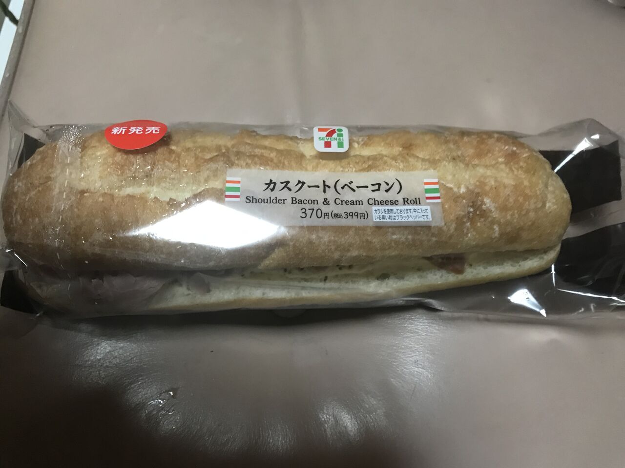 セブンイレブンのパン、まるでメロンのようなメロンクリームパンとカスクート(ベーコン)です。
