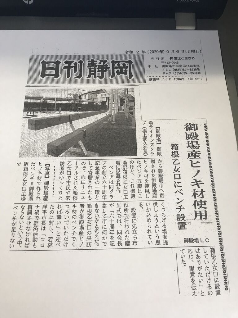 そして同じく、JR御殿場駅乙女口に地元の檜を使ったベンチを設置させていただきました。