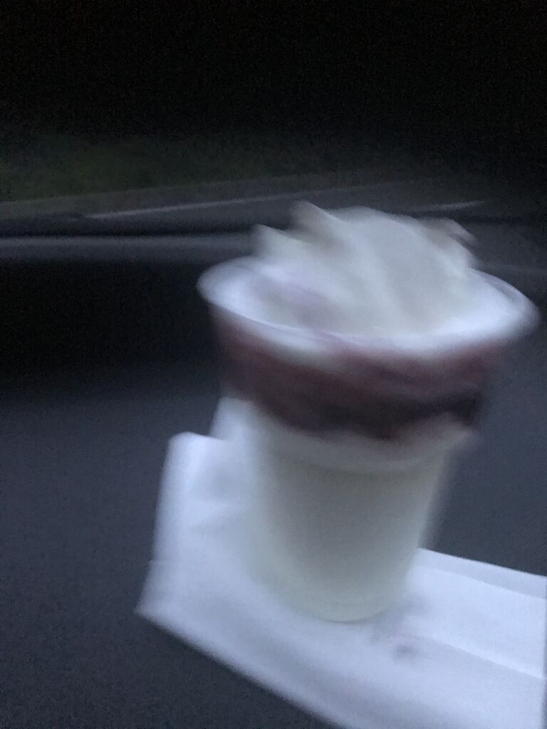 帰りに食べたソフトクリームの乗ったヨーグルトは、ピンボケでした。