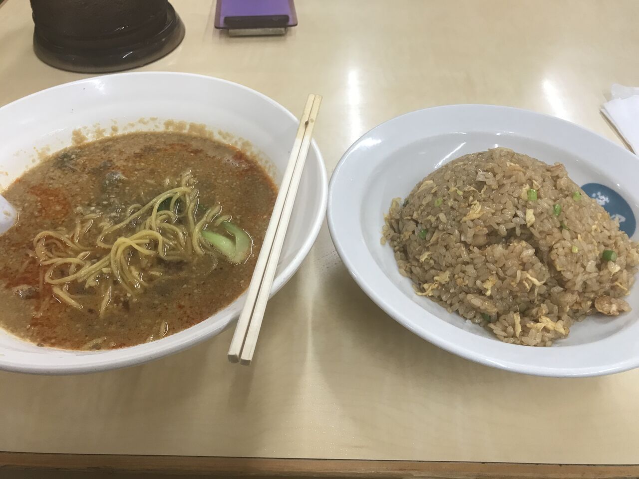 この説明会の前に食べた「漢風」の担々麺と黒チャーハン。