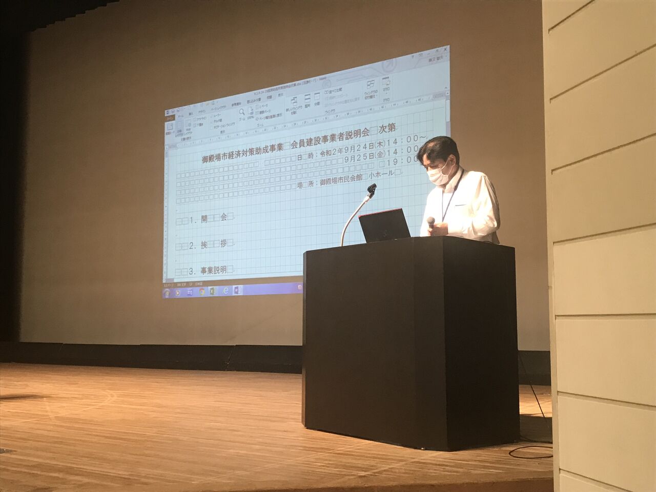 御殿場市経済対策助成事業の商工会会員建設事業者説明会です。