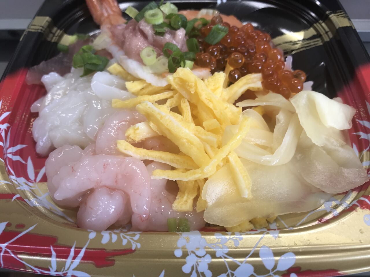 海鮮丼+イカフライ。このイカフライも、好物です。