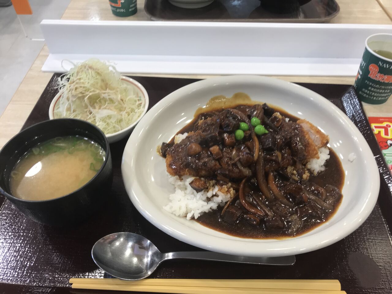 帰りの足柄SAで昼食です。「さぼてん」のカツハヤシをいただきました。