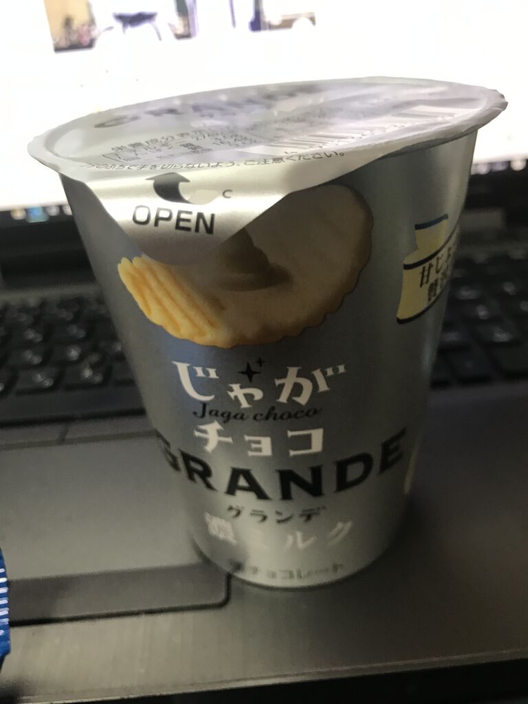 じゃがチョコGRANDE、ホワイトチョコでコーティングされたポテトチップス、しょっぱ甘い美味しさです。