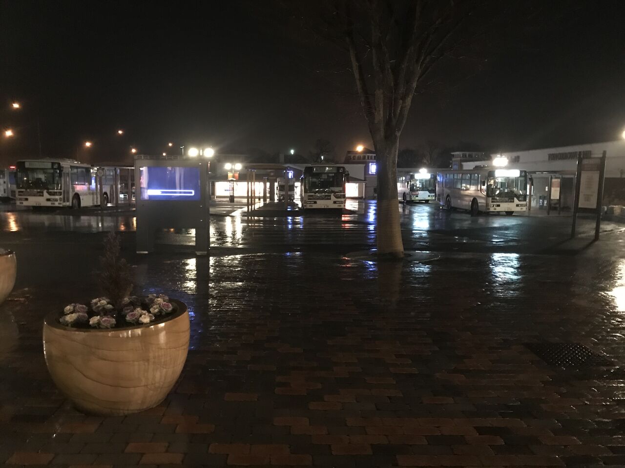 ある日の夜間工事は、冷たい雨でした。