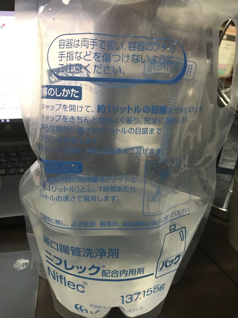 大腸内視鏡の検査に向けて、下剤飲んでます。