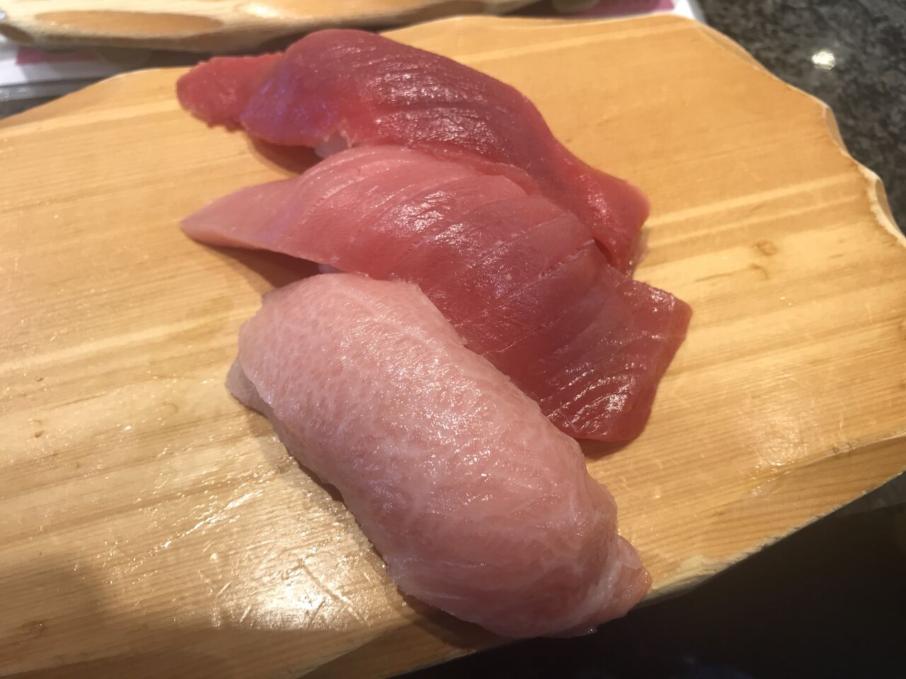 鮪、赤身、中トロ、大トロ。アカムツ(のどぐろ)、こはだ。