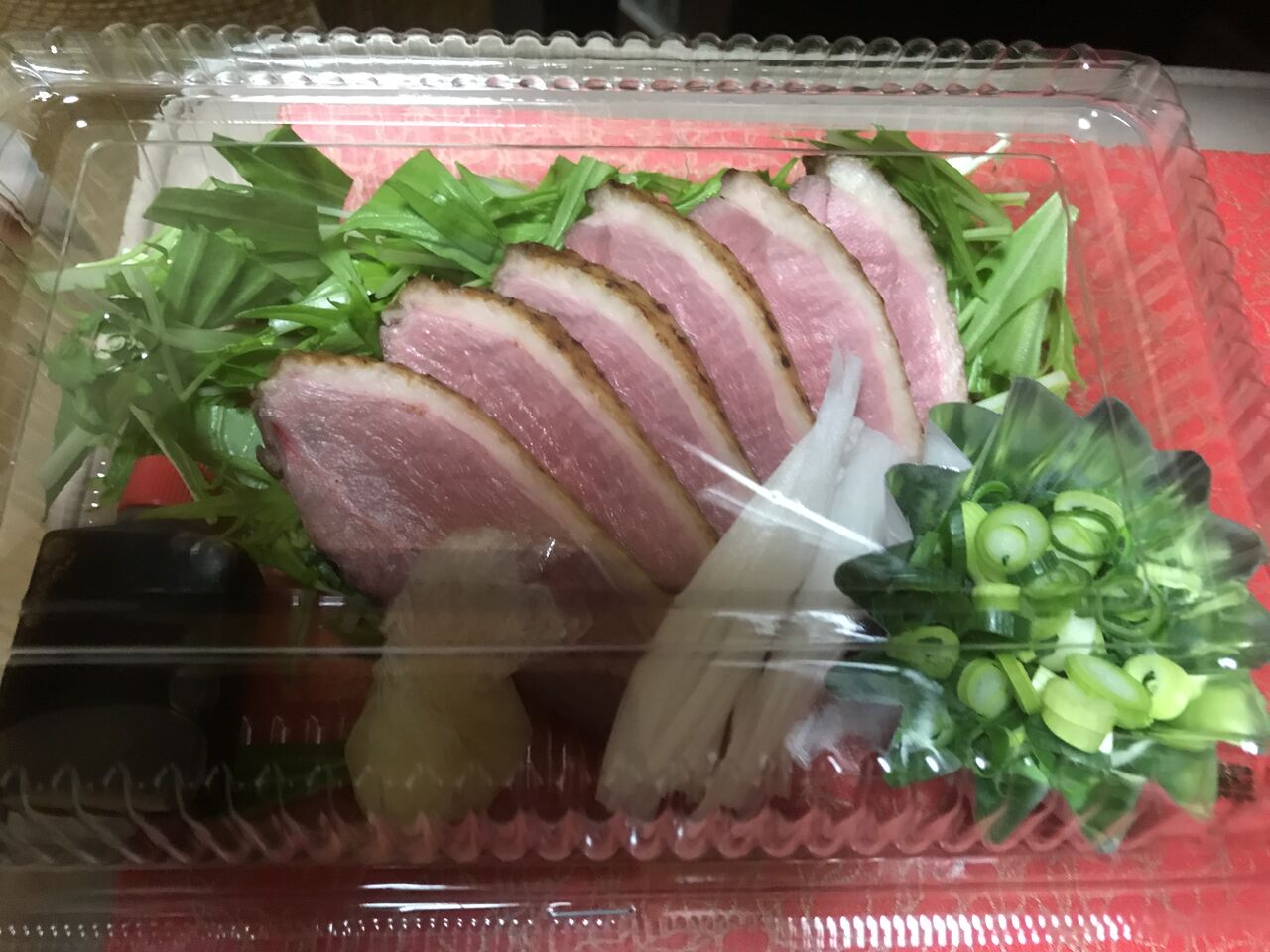 家に帰り、夕食としていただこうと開けてみると、鴨肉とお蕎麦でした。