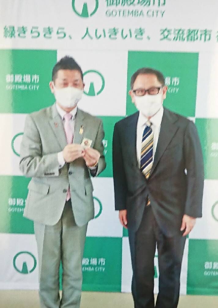 先日の選挙で4期目の当選を果たした若林御殿場市長の元へ、トヨタの豊田社長が表敬訪問。環境都市で連携です。