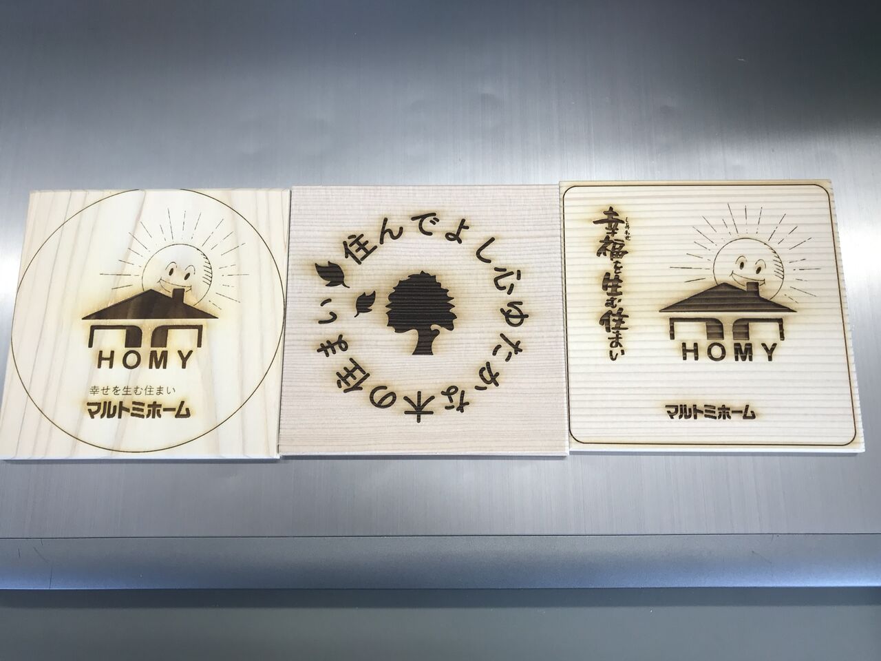 杉は1枚250円、桧は1枚300円で、好きなデザインで作成できるそうです。会社のPRに作ってみようかとお見ます。