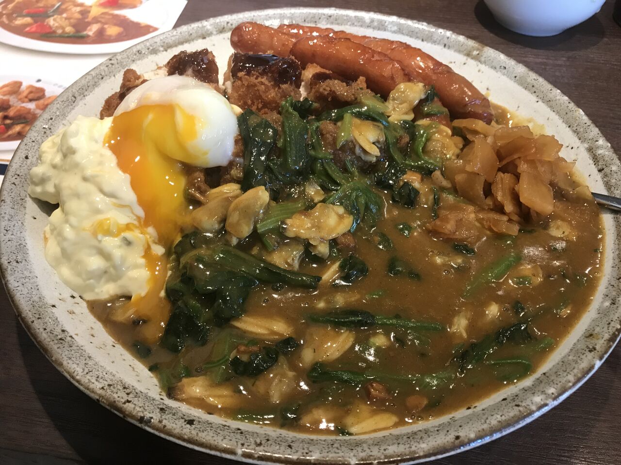 CoCo壱番、手仕込みヒレカツ、半熟卵タルタルソース、ホウレンソウ、アサリ、ウインナー4本トッピングです。まいうー!