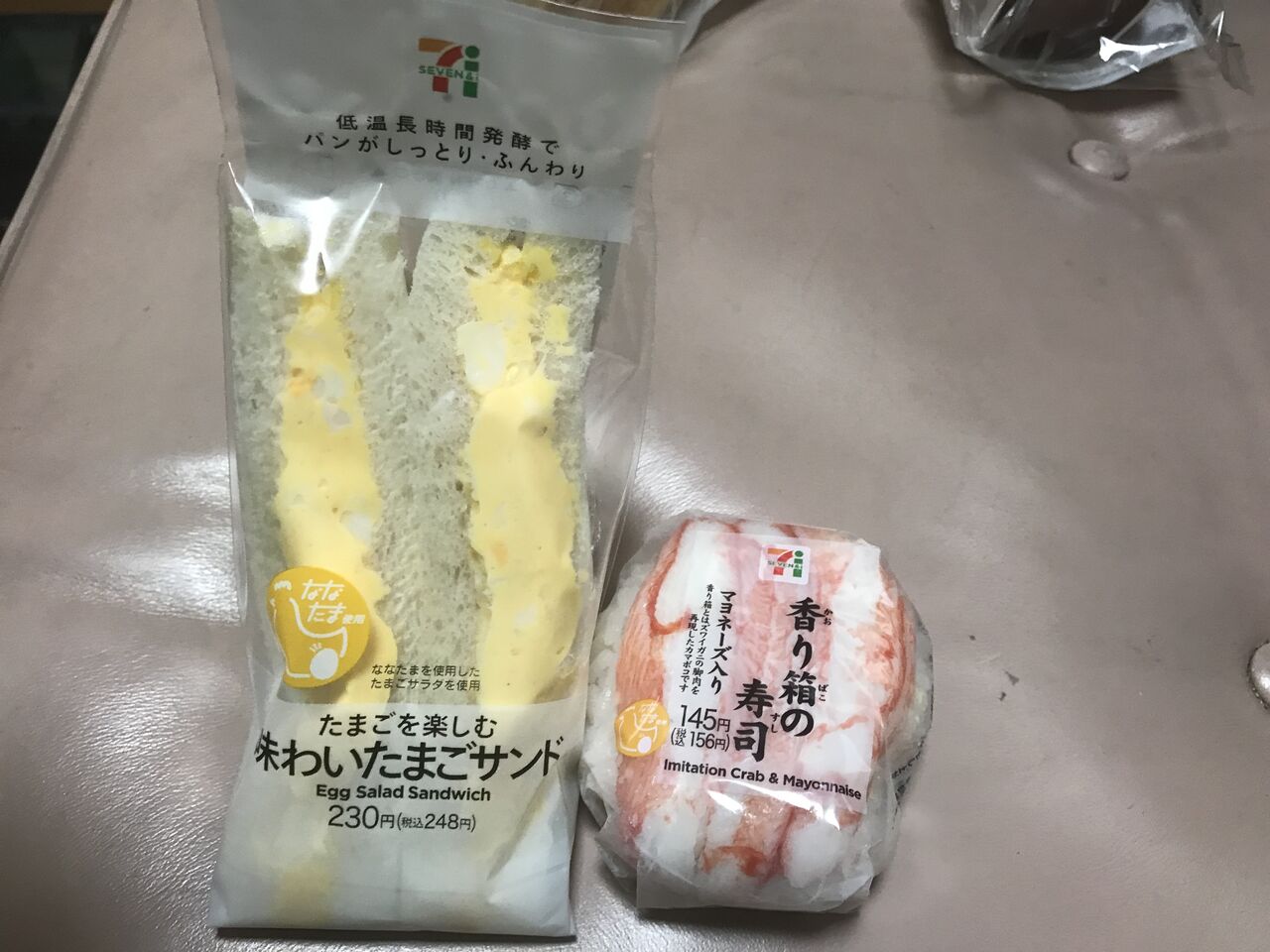 たまごサンド、また美味しくなりました。カニカマ寿司も、うみゃー!