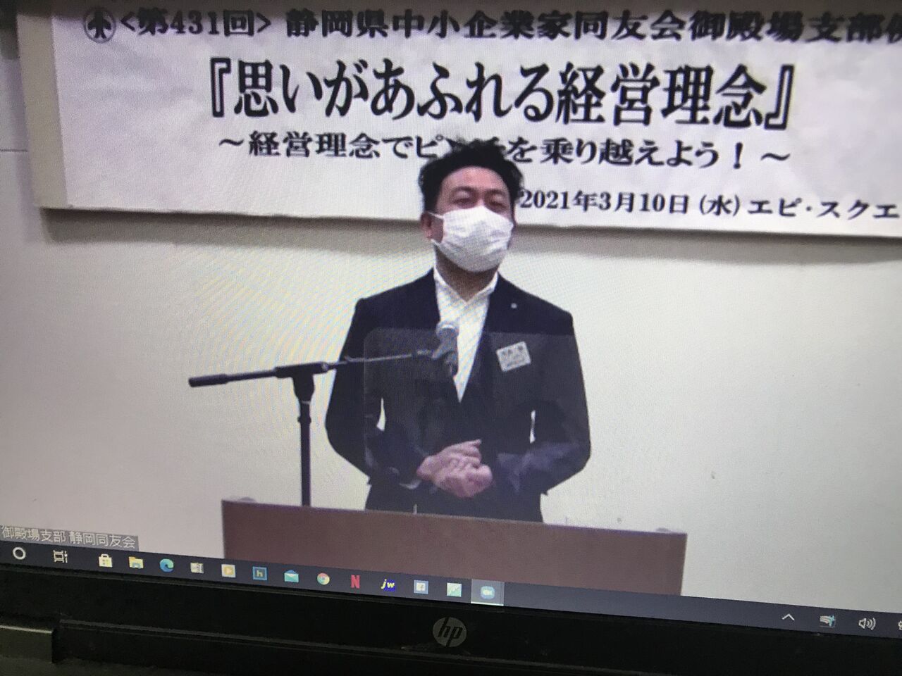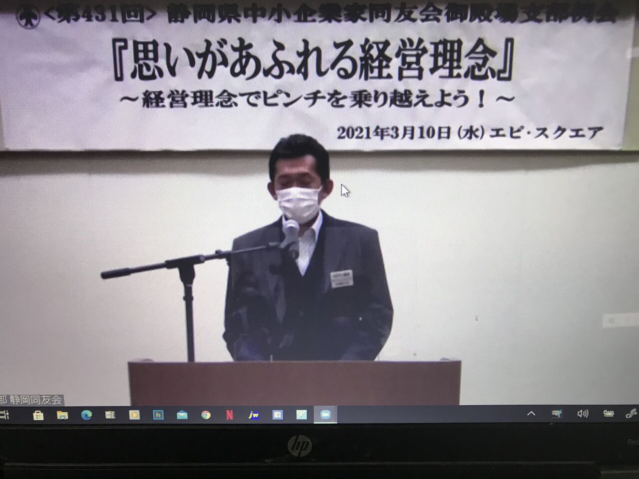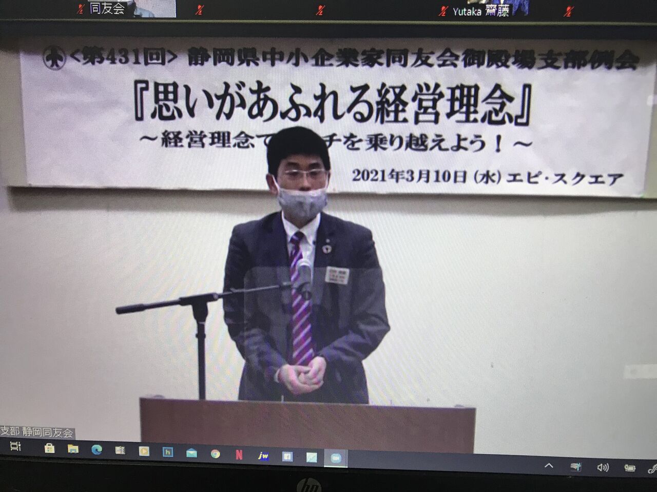 同友会御殿場支部3月例会は通常通りエピスクエアでの開催ですが、私は今月もzoomでの参加でした。司会は塩川君。