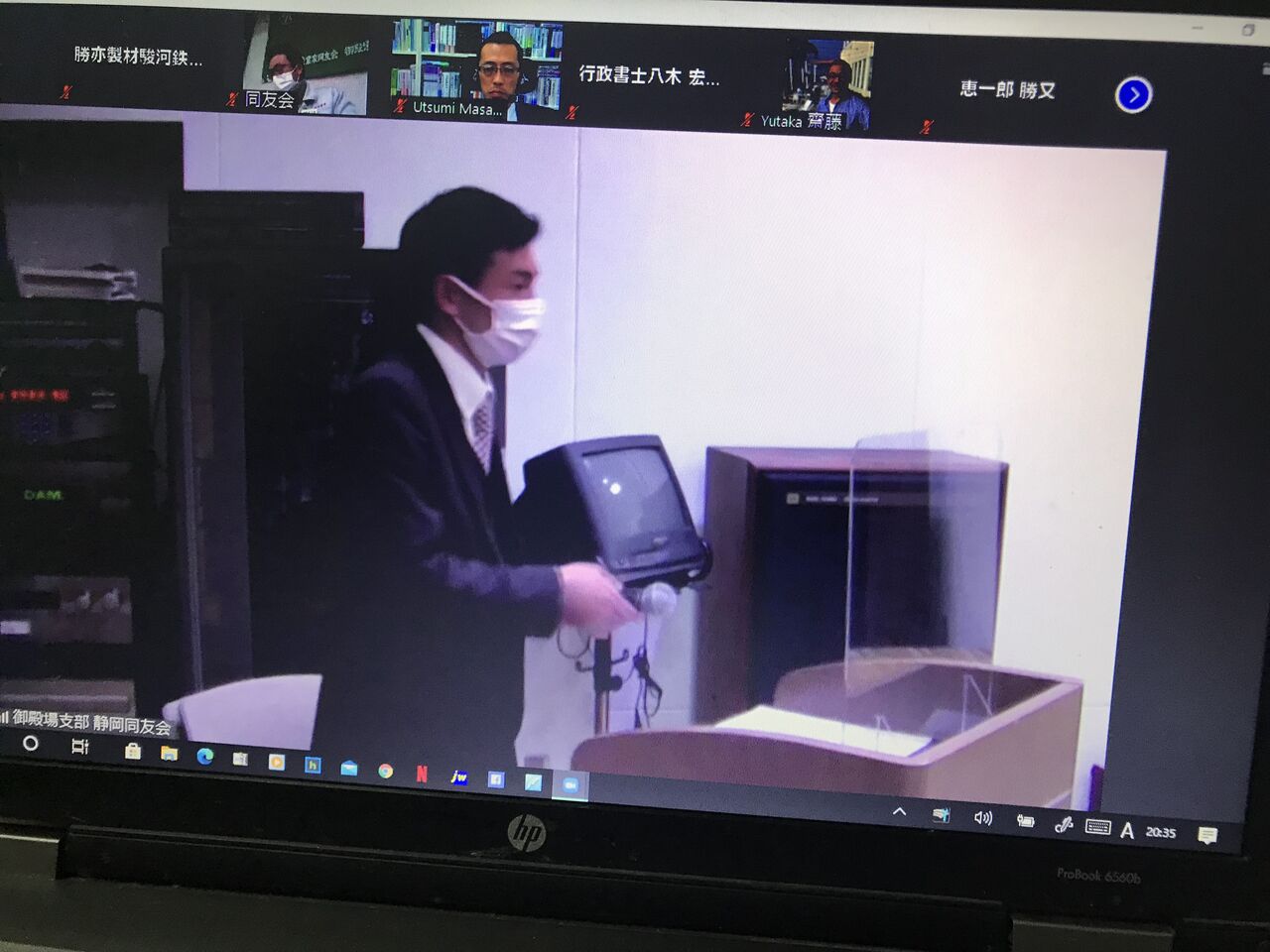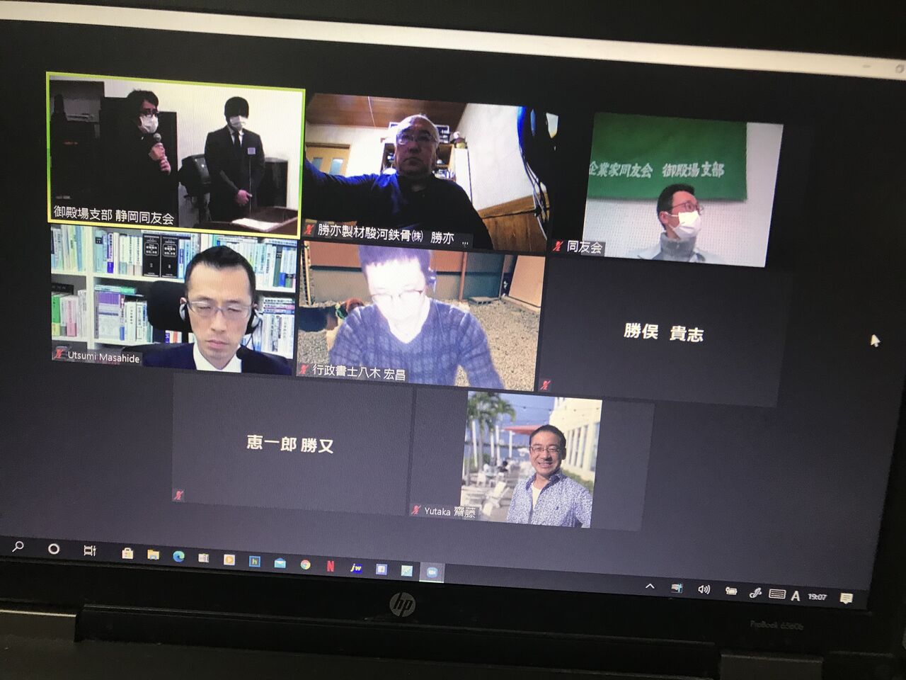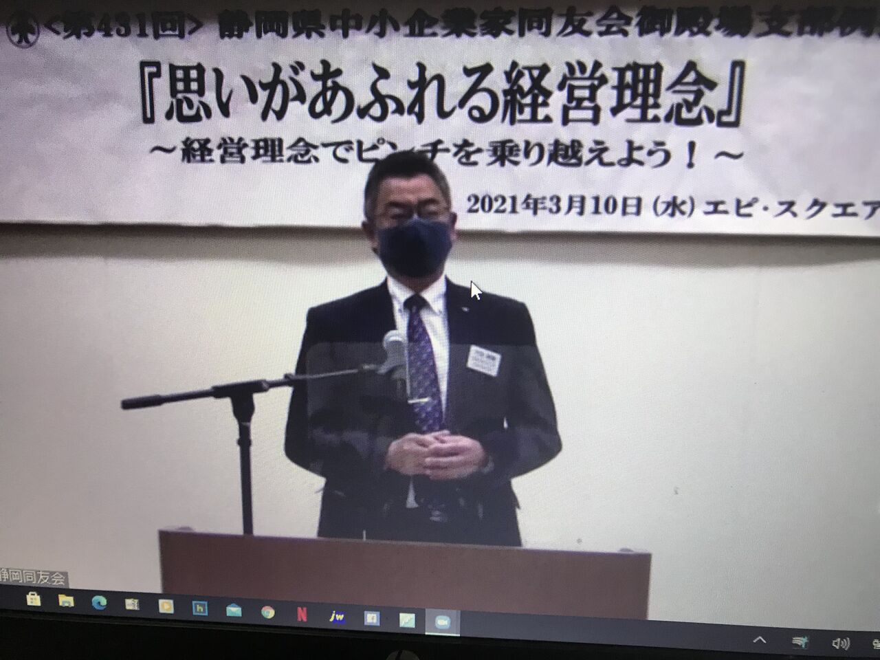同友会御殿場支部3月例会は通常通りエピスクエアでの開催ですが、私は今月もzoomでの参加でした。司会は塩川君。