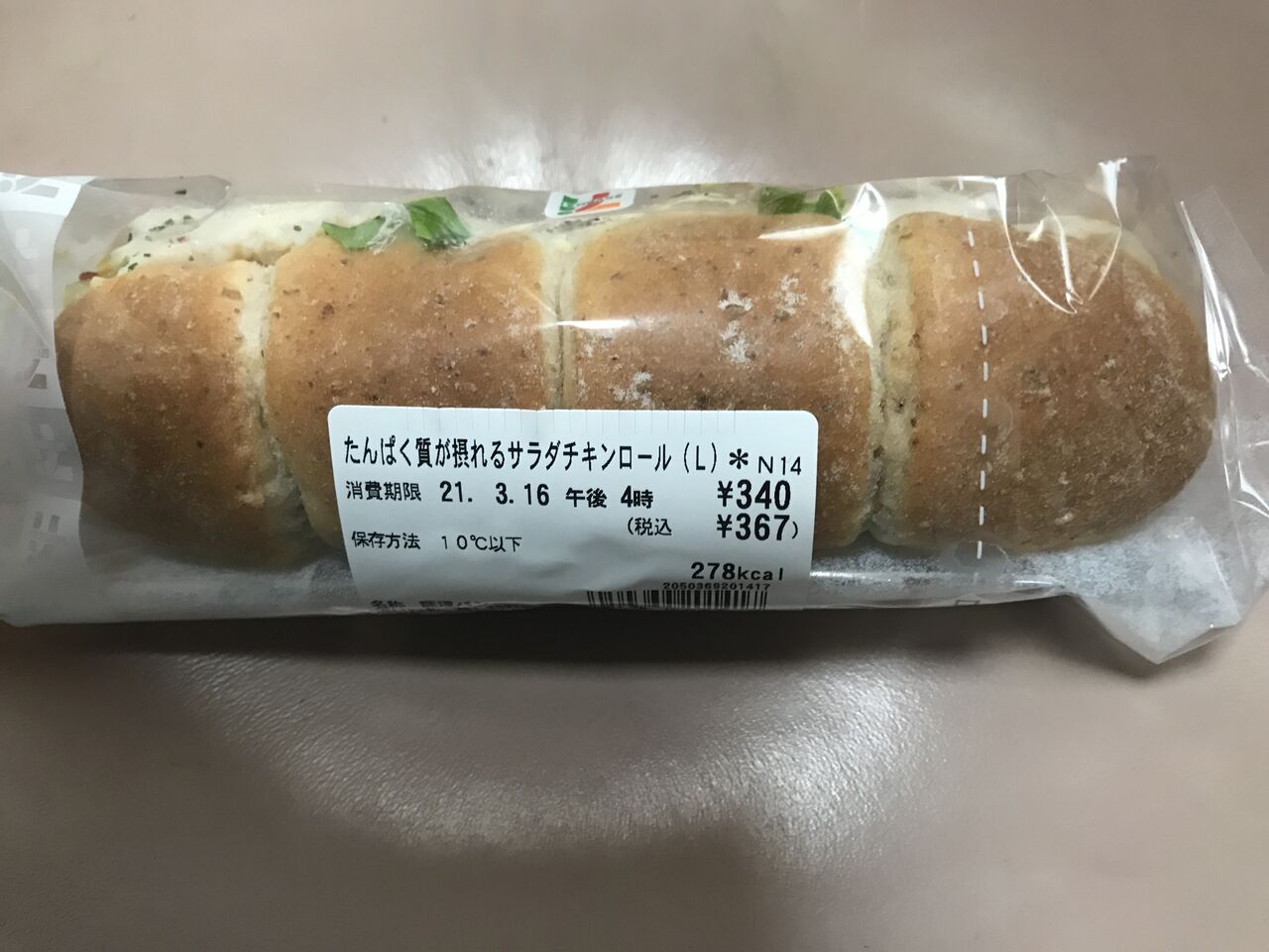 セブンイレブンの、たんぱく質が摂れるサラダチキンロール(L)です。