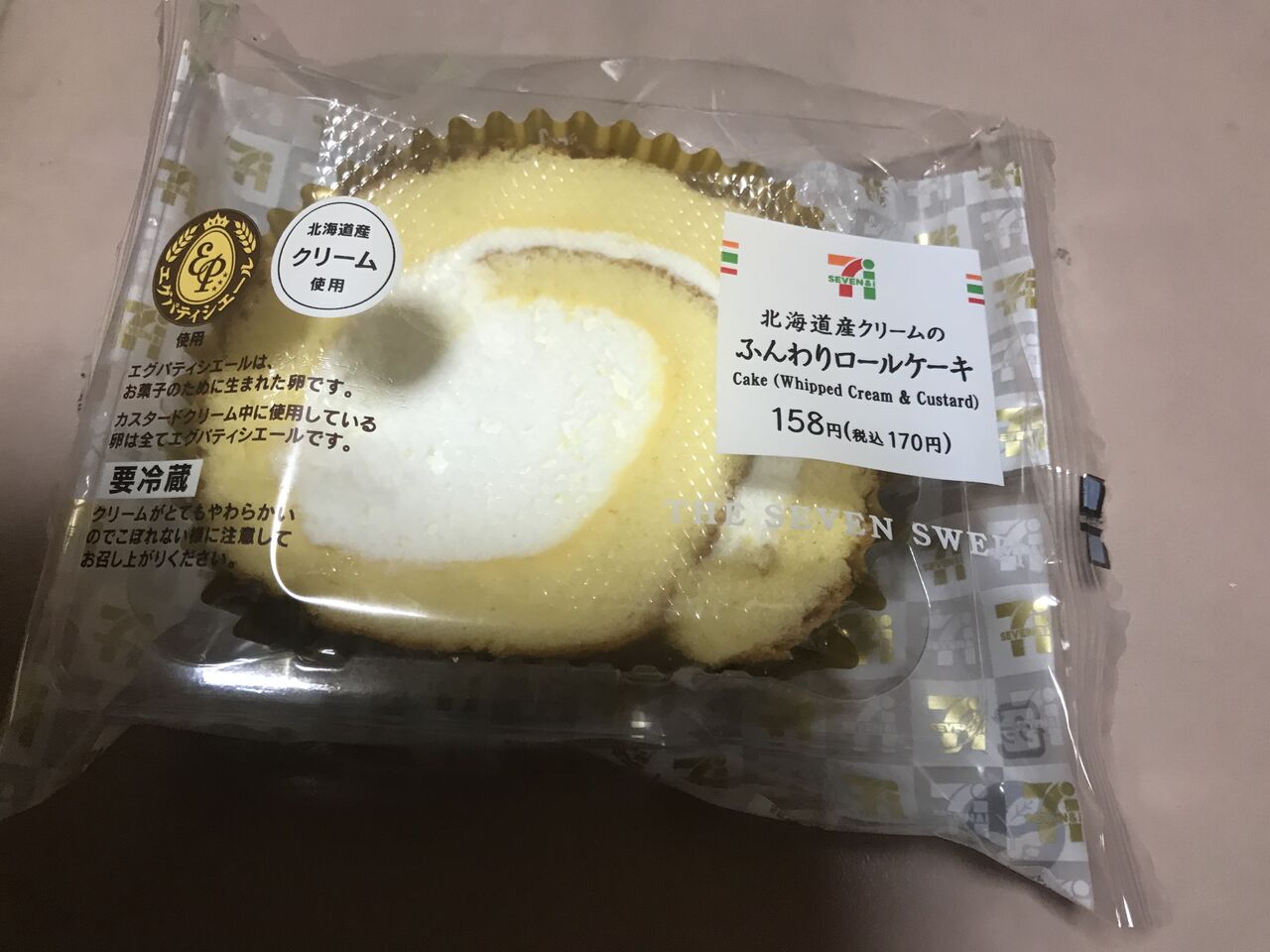 セブンイレブンの北海道産クリームのふんわりロールケーキ。